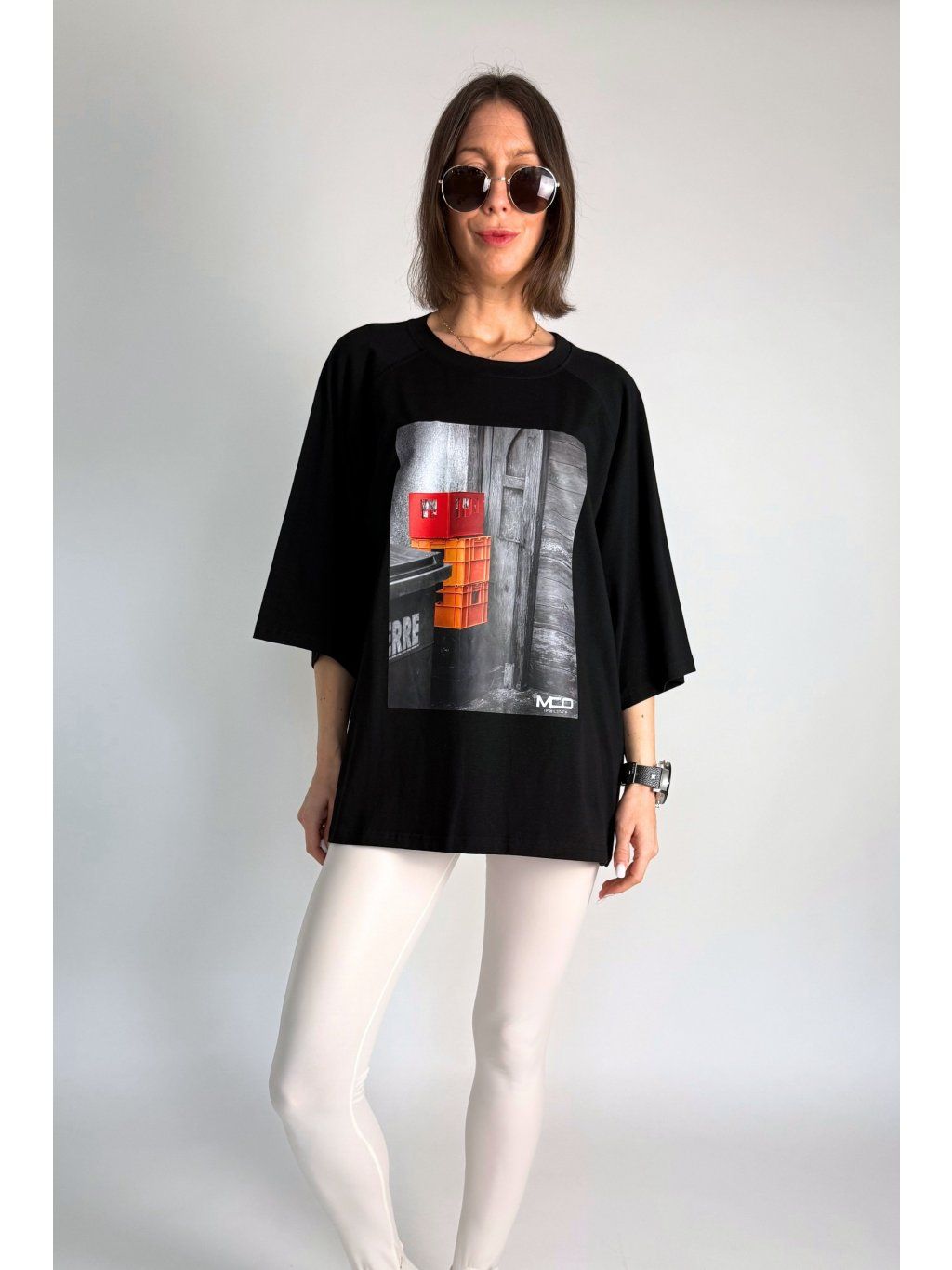 Oversize tričko z příjemného, pružného bavlněného materiálu, který se pohodlně přizpůsobí postavě. Díky volnému, čtvercovému střihu nabízí maximální komfort a variabilitu nošení.