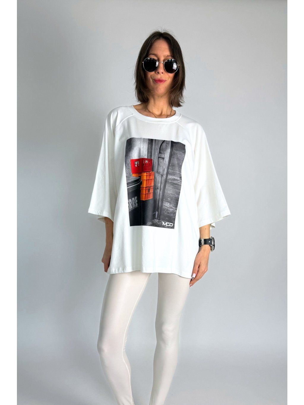 Tričko má kulatý výstřih, široké polodlouhé rukávy a decentní potisk. Ideální jako stylový basic kousek pro každodenní nošení.