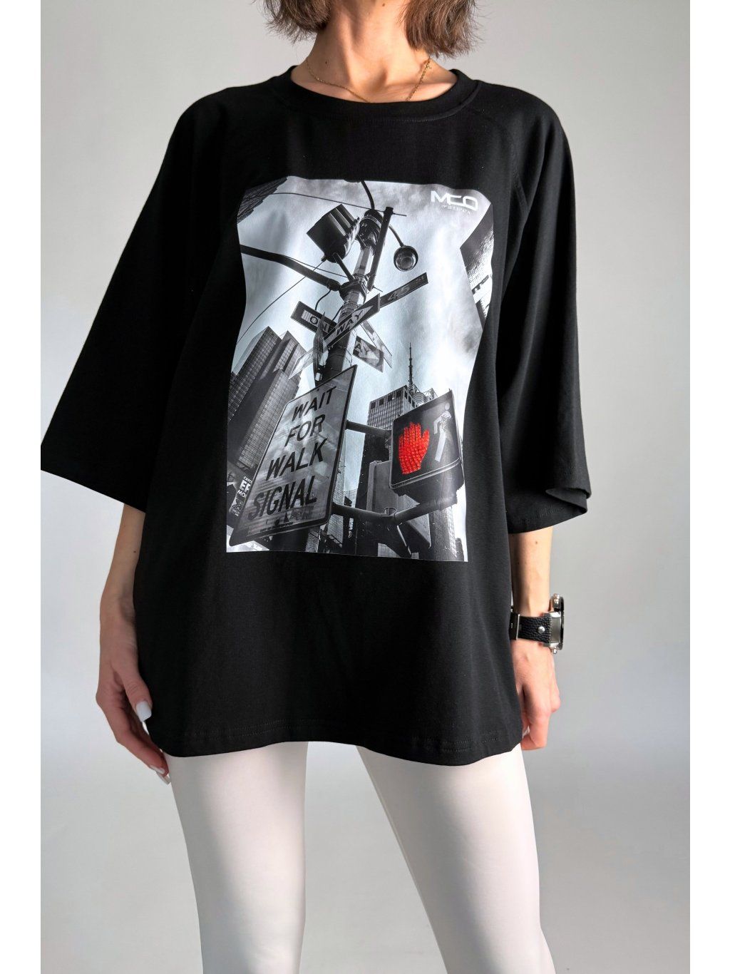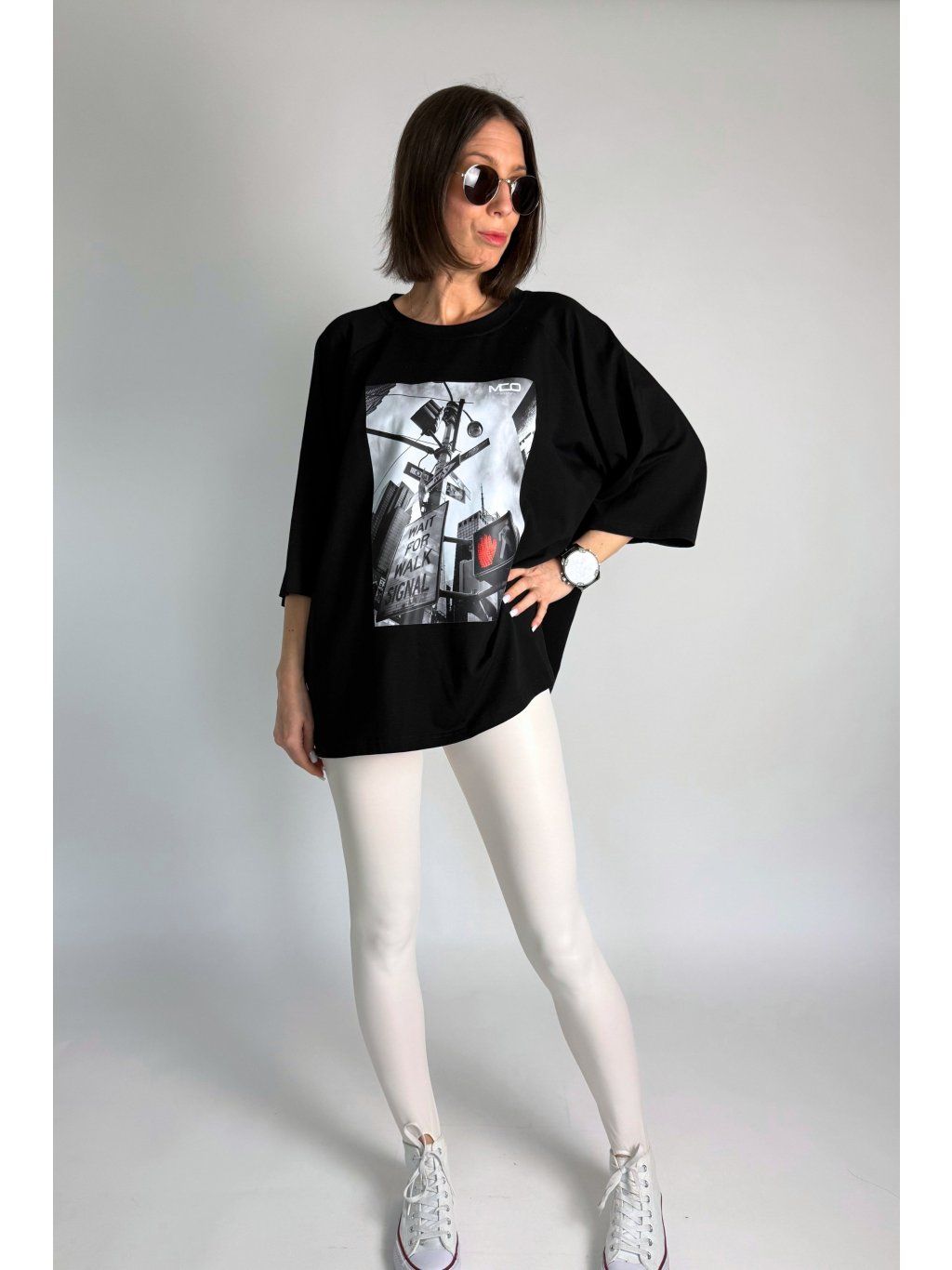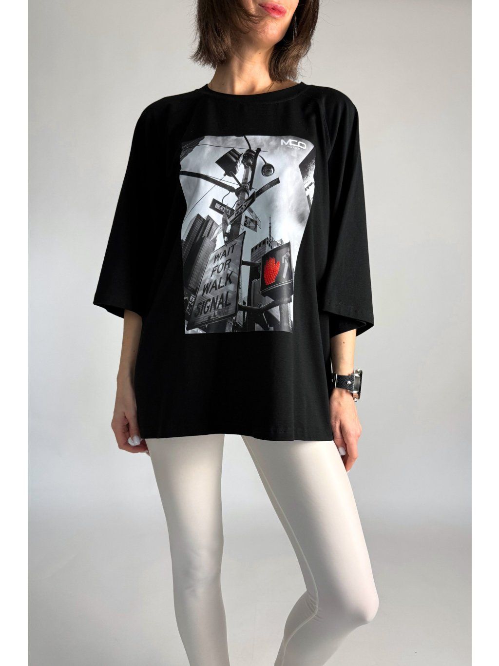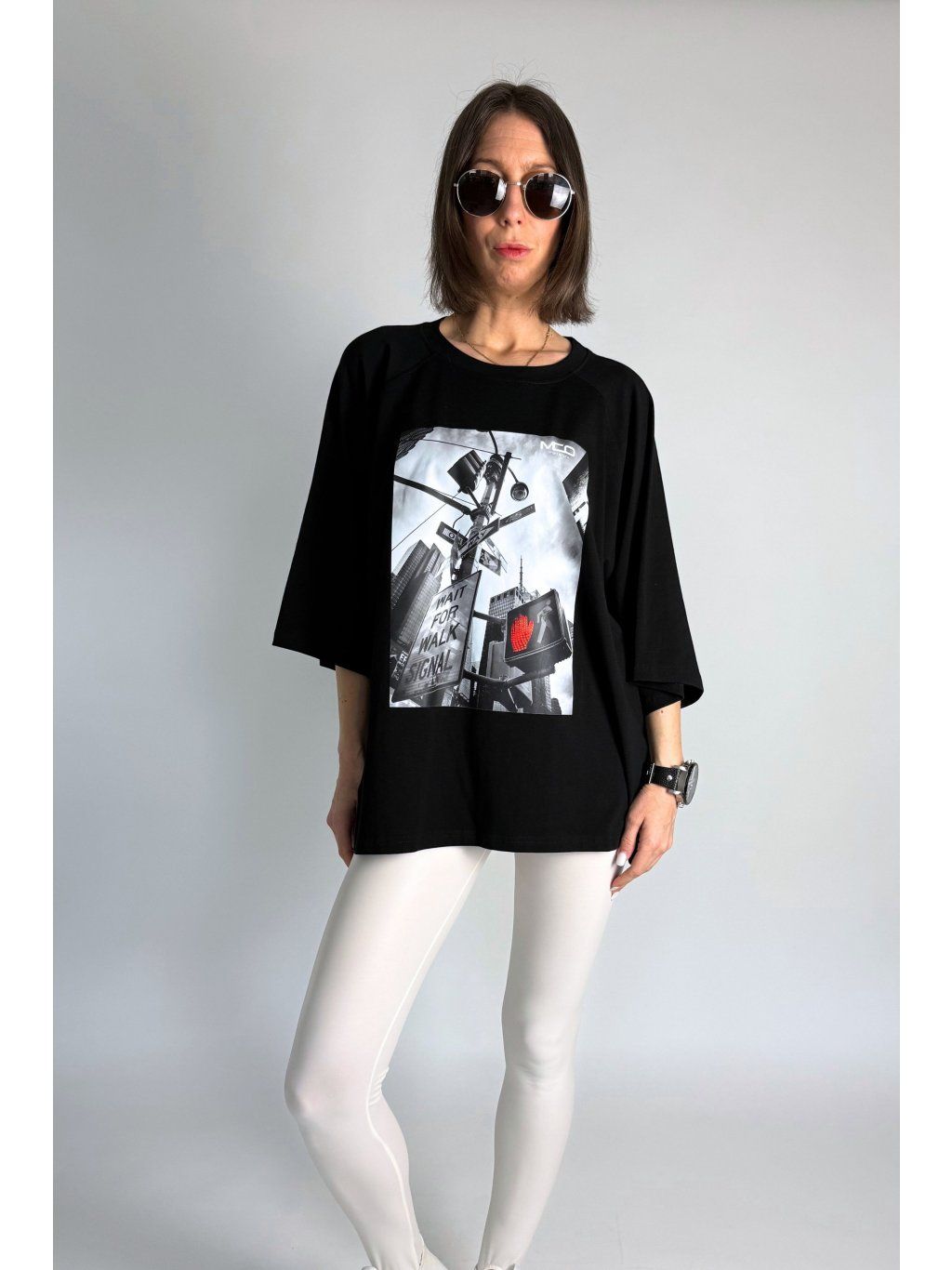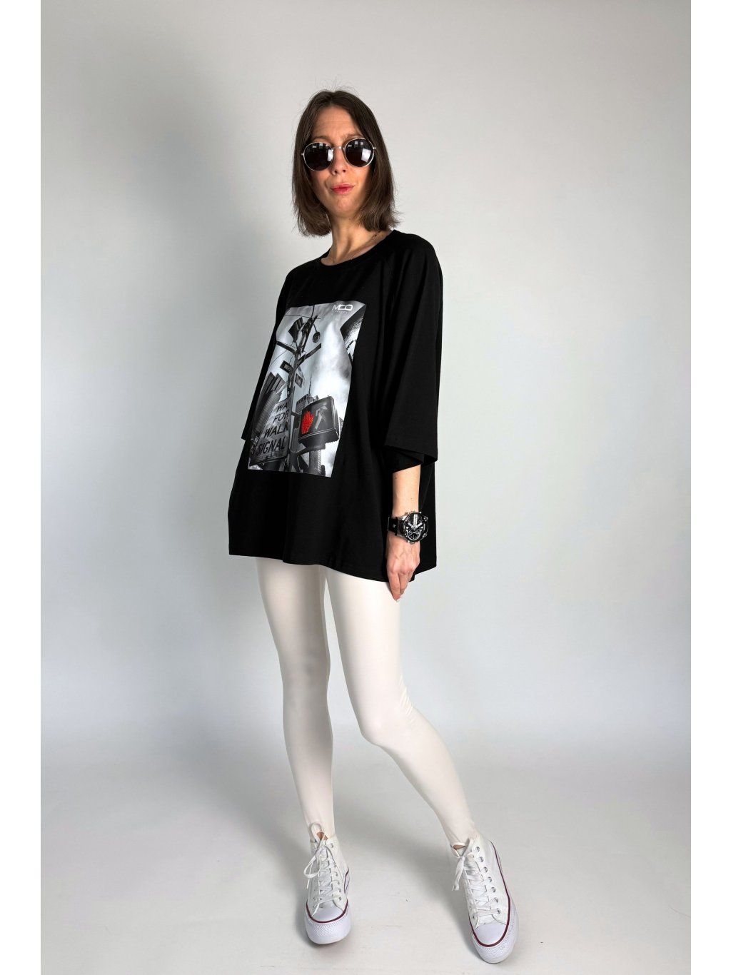 Tričko má kulatý výstřih, široké polodlouhé rukávy a decentní potisk. Ideální jako stylový basic kousek pro každodenní nošení.