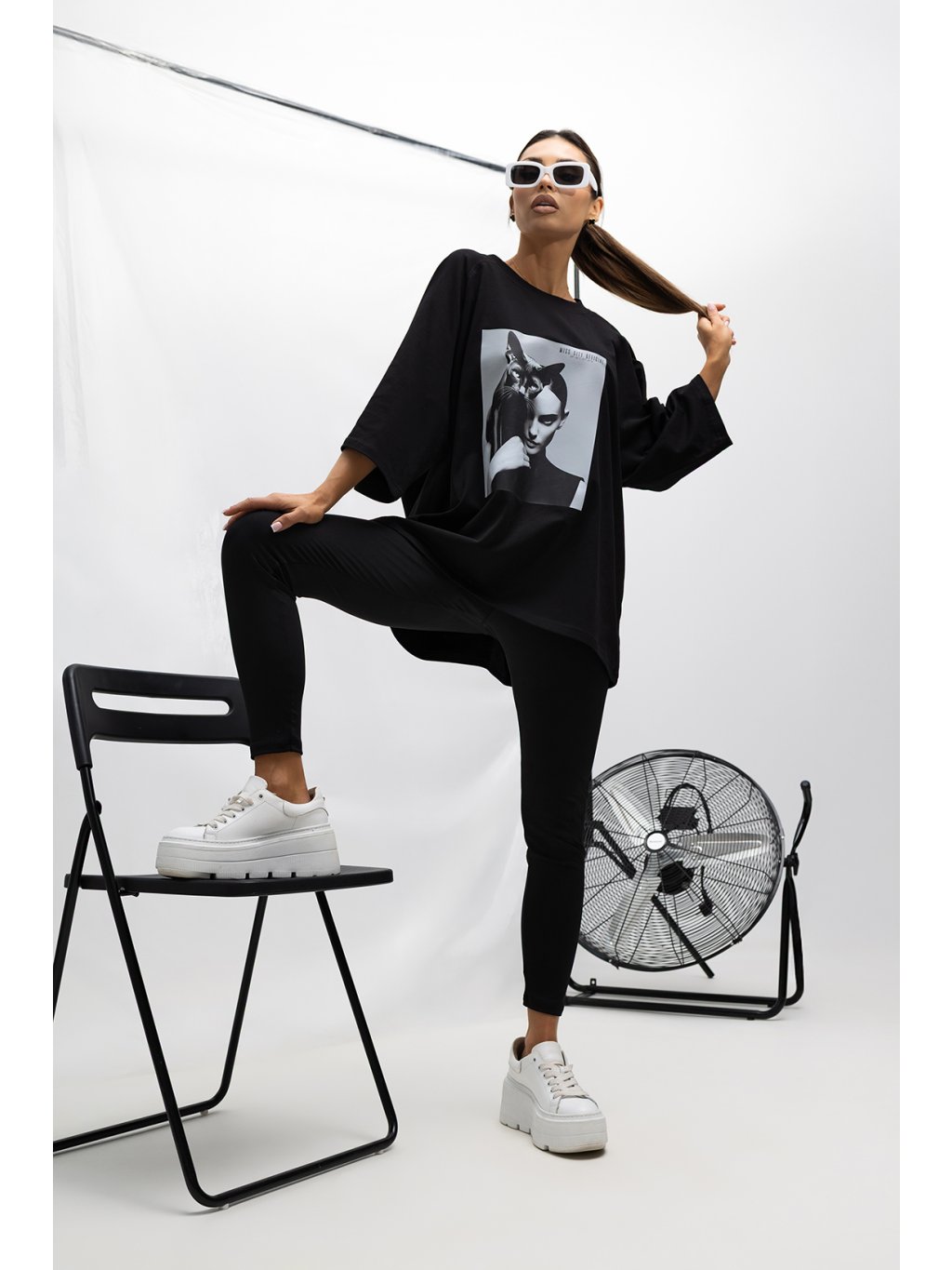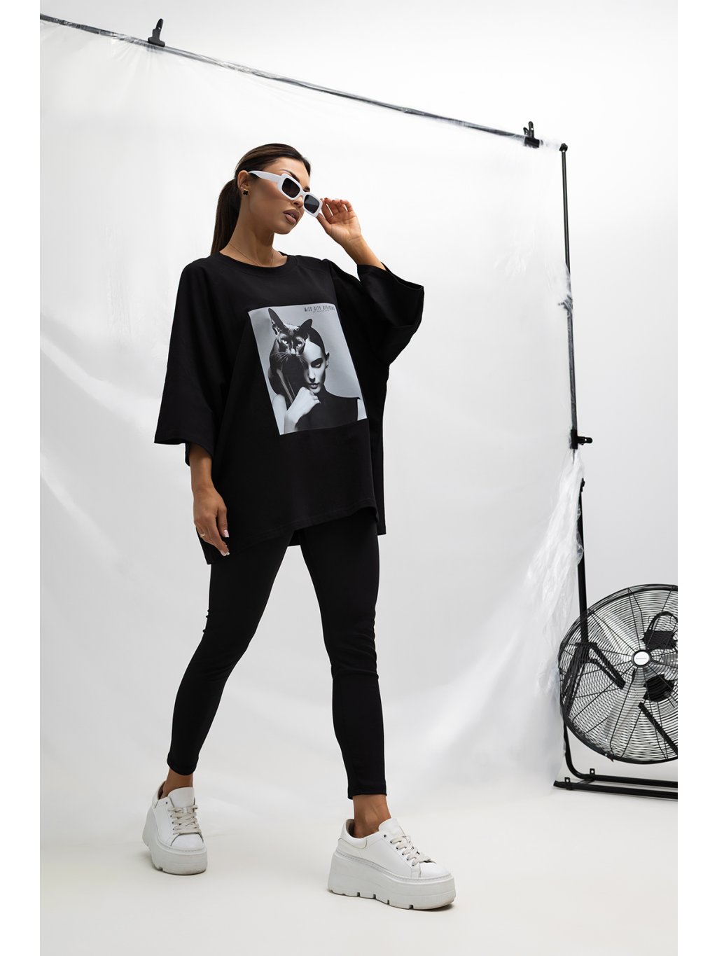 Oversize tričko z příjemného, pružného bavlněného materiálu, který se pohodlně přizpůsobí postavě. Díky volnému, čtvercovému střihu nabízí maximální komfort a variabilitu nošení.