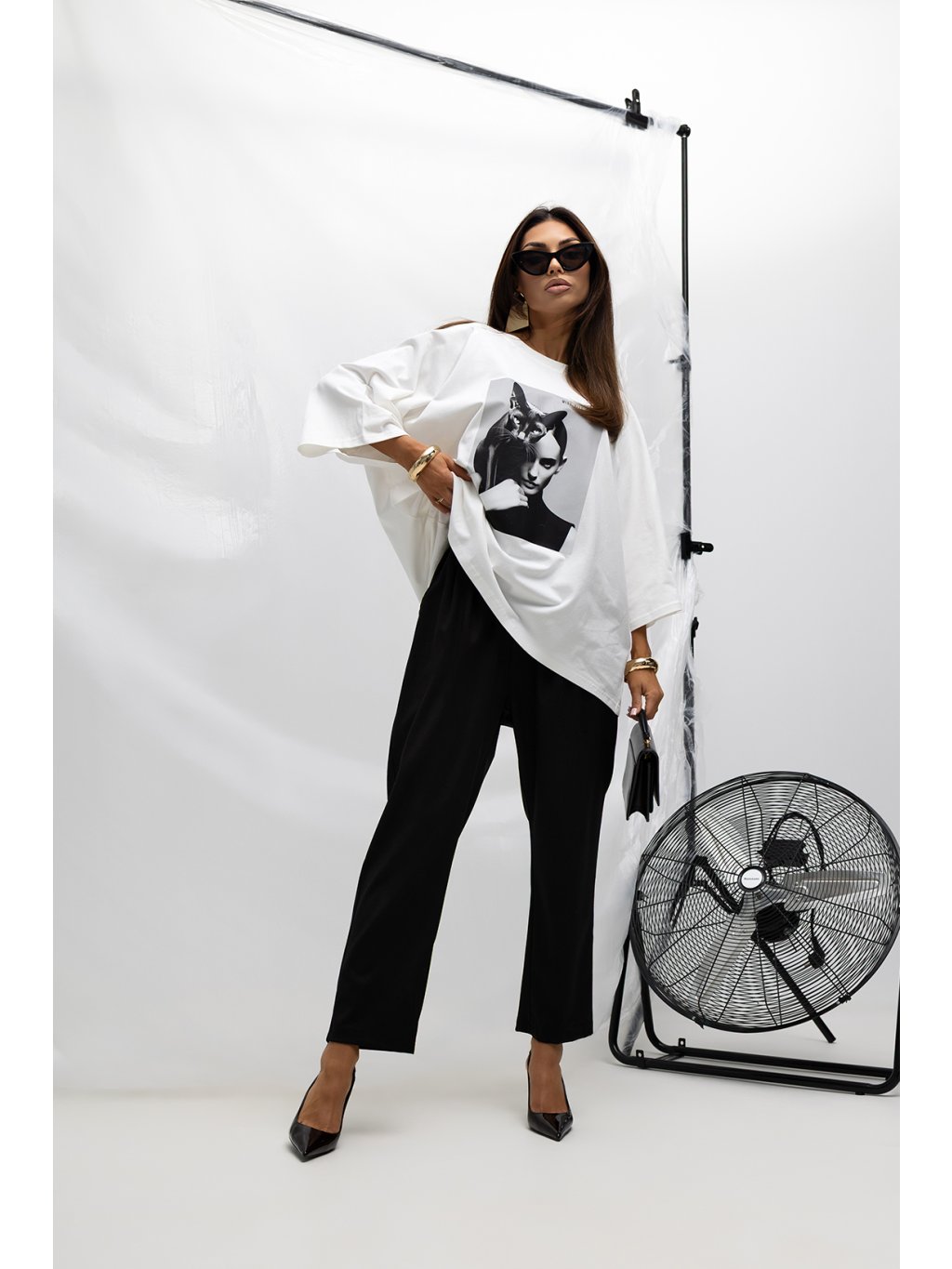 Tričko má kulatý výstřih, široké polodlouhé rukávy a decentní potisk. Ideální jako stylový basic kousek pro každodenní nošení.