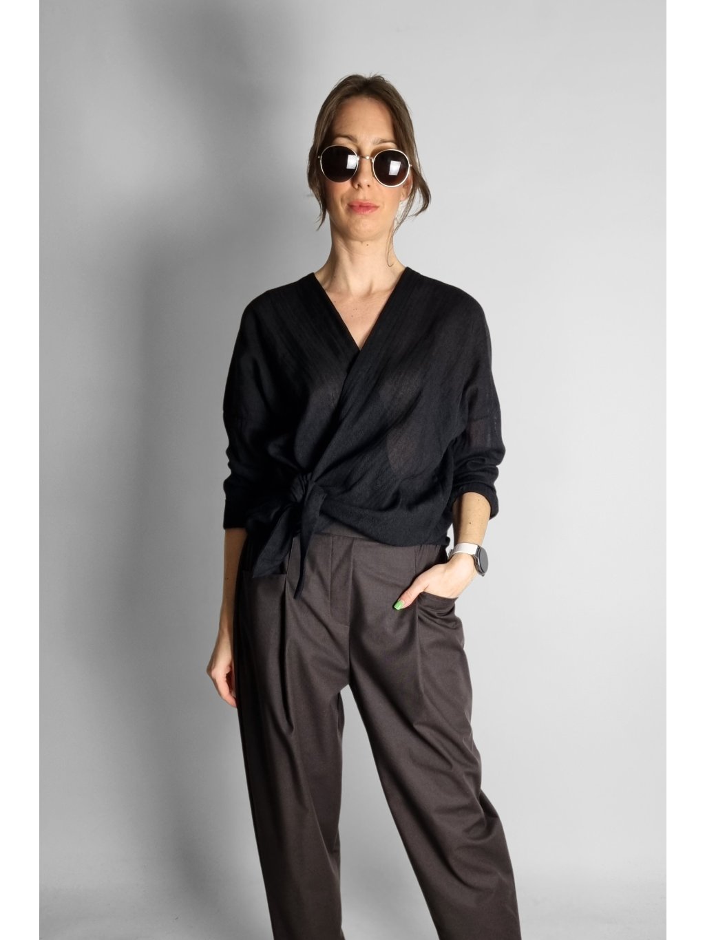 V pase je na levé straně knoflík pro sepnutí, na opačné straně vázání, které zajišťuje fixaci a umožňuje úpravu siluety