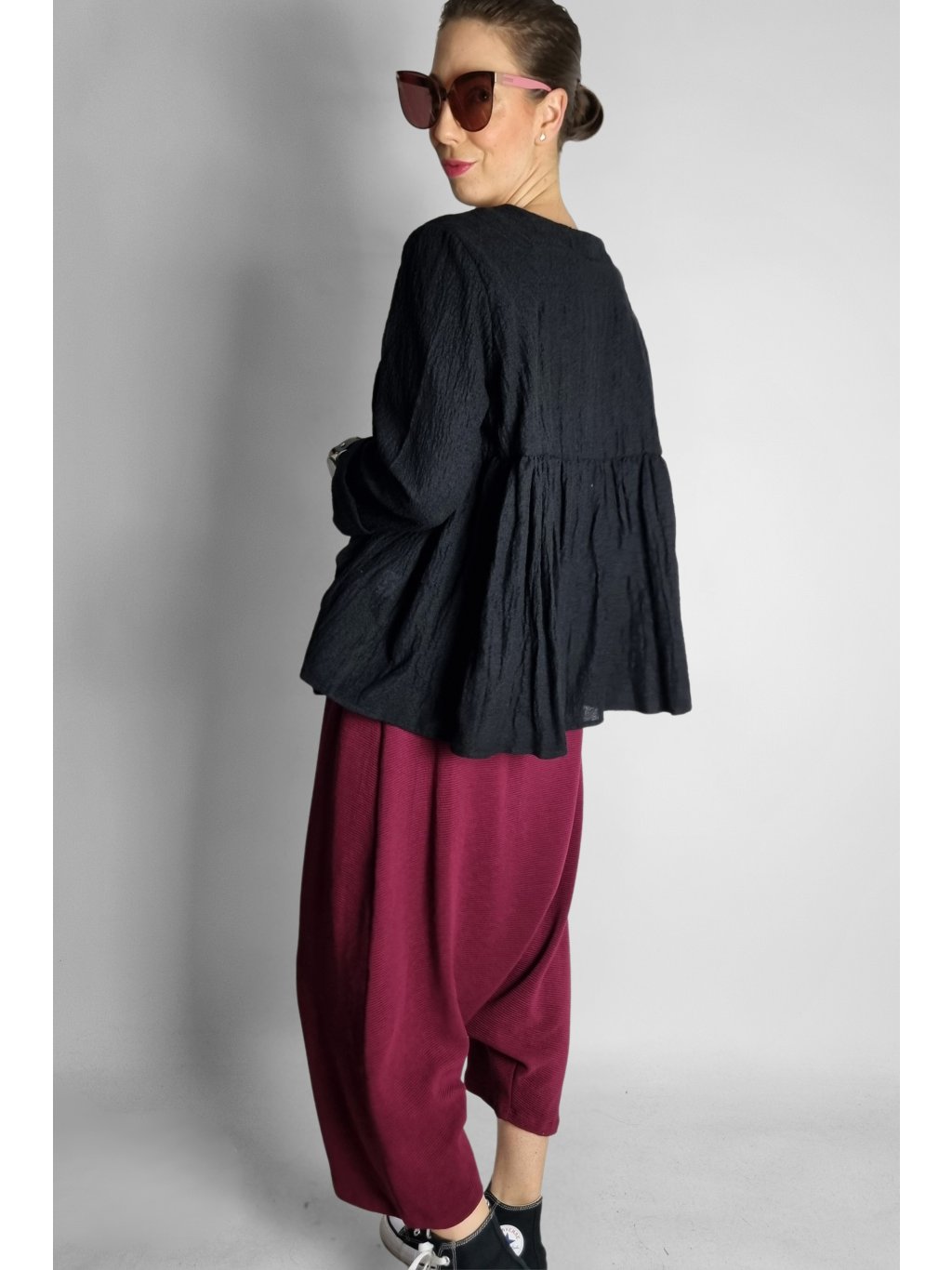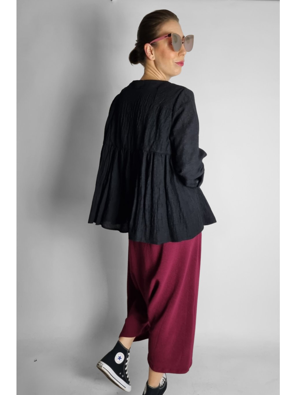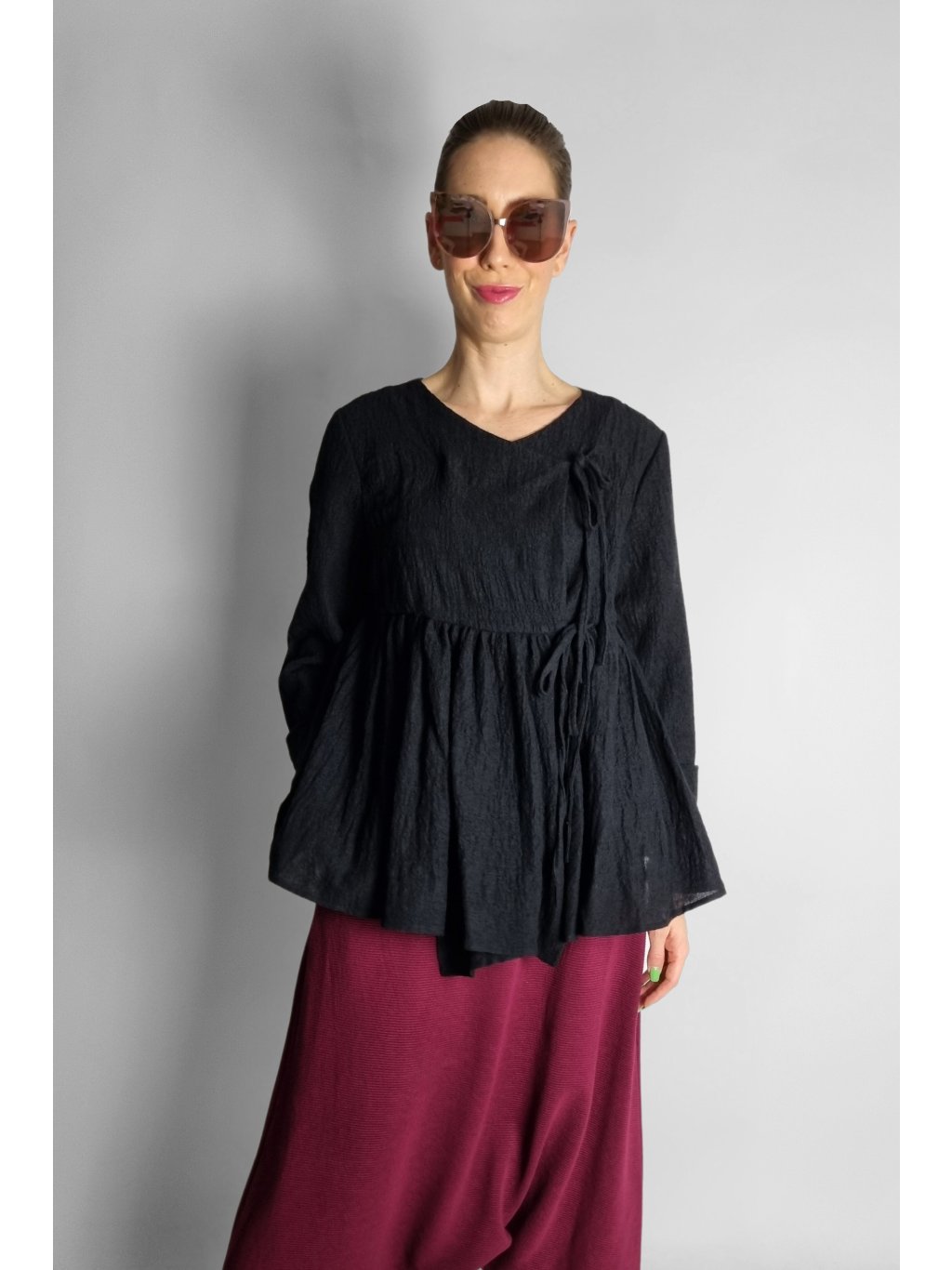 Vlněná košile | halenka s rozšířeným střihem pod prsy