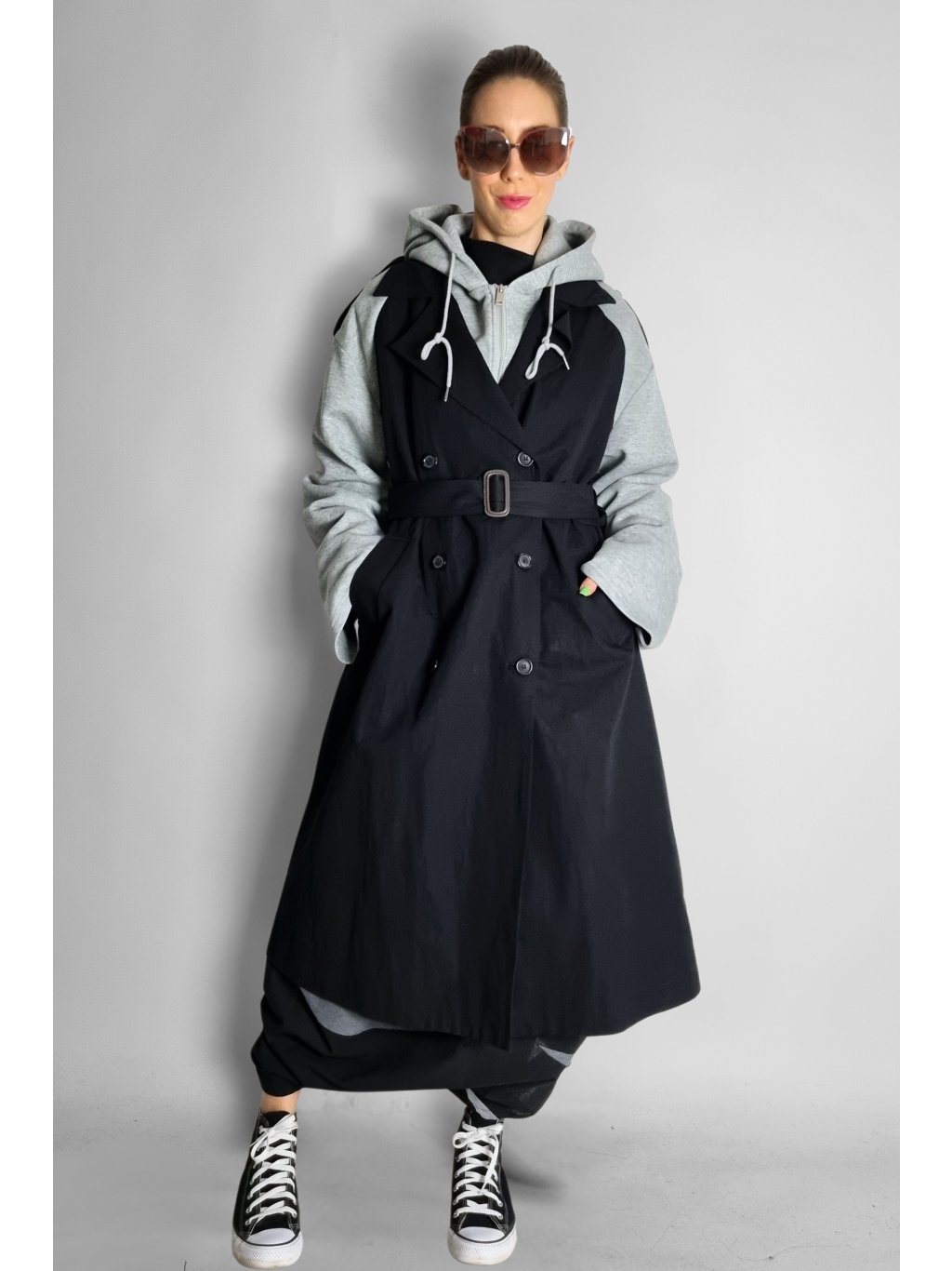 Vrtvený originální kabát s páskem